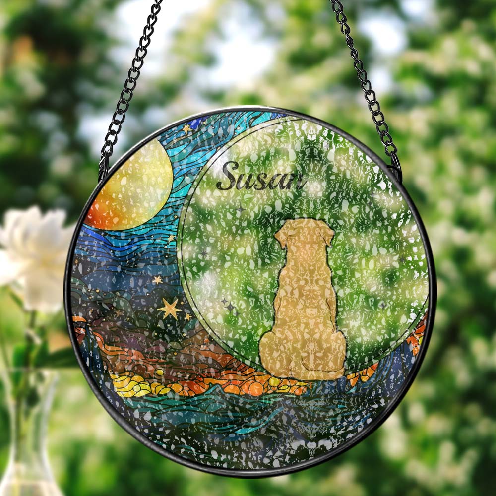 Custom Pet Portrait Art Suncatcher Stained Glass Ornament Dog Memorial Gifts for Pet Lovers