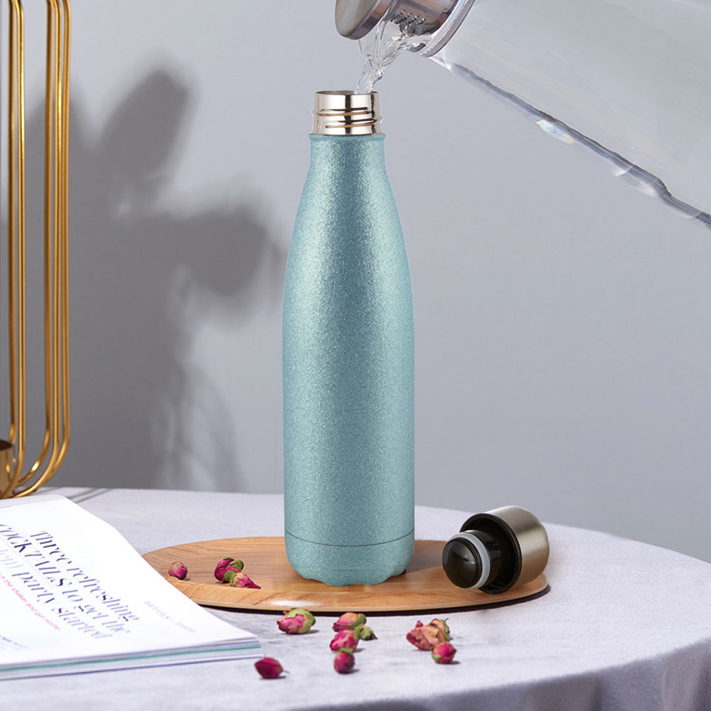 Water Bottle Glitter Series Vacuum Insulated Stainless Steel Gym Bottle 500ml Chilly Flask Shimmer Aquamarine