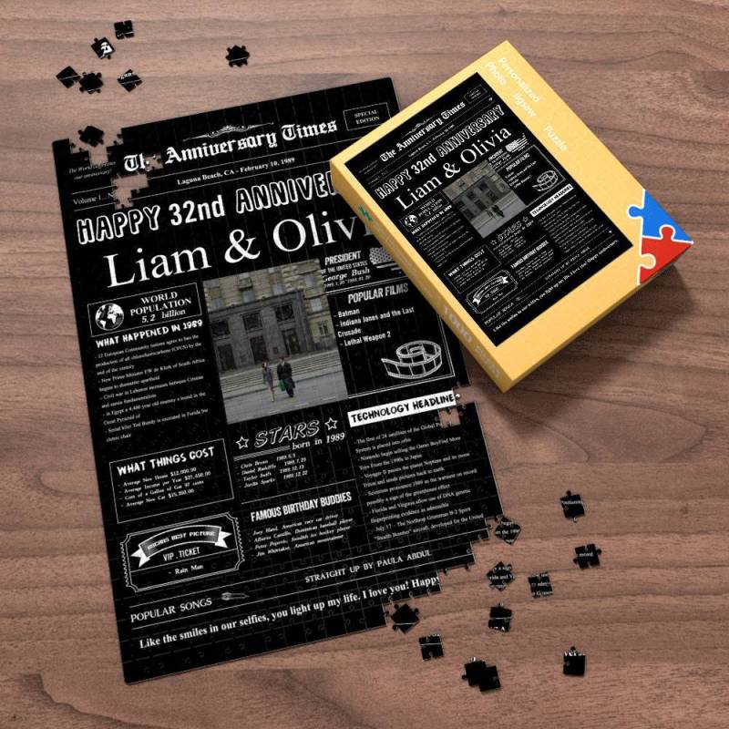 100 Years History News Custom Photo Jigsaw Puzzle Newspaper Decoration 32nd Anniversary Gift 32nd Birthday Gift Back in 1989