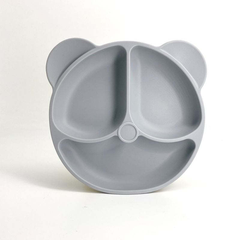 Baby Silicone Feeding Divided Dishware Bear Shaped Dinner Tray Suction Cup Tableware Auxiliary Food Plate