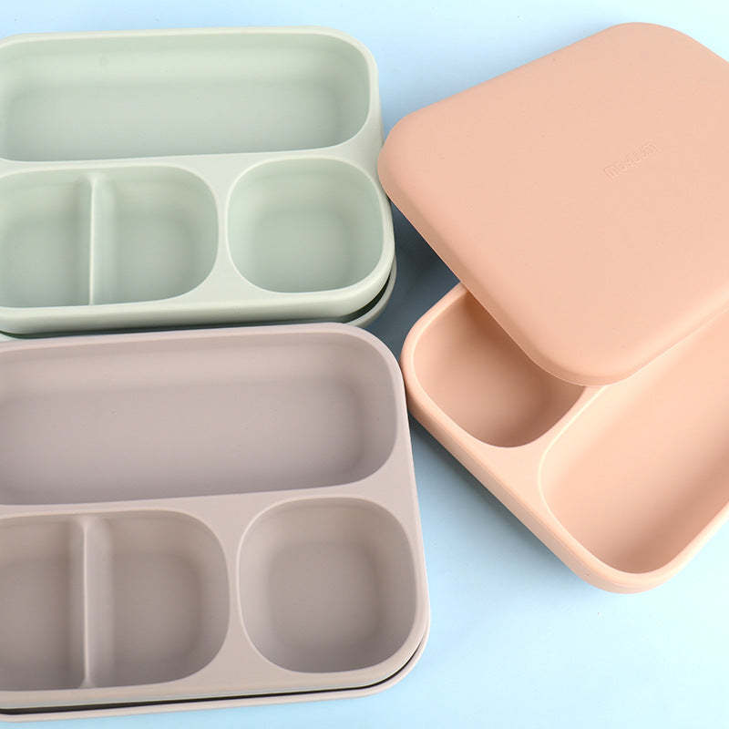 Baby Silicone Feeding Divided Dishware Square Shaped Dinner Tray Suction Cup Tableware Auxiliary Food Plate