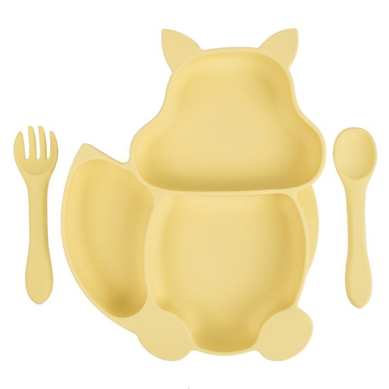 Baby Silicone Feeding Divided Dishware Squirrel Shaped Dinner Tray Suction Cup Tableware Auxiliary Food Plate