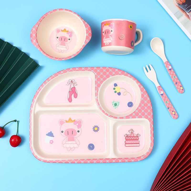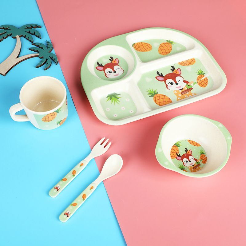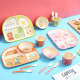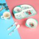 Bamboo Fiber Children Tableware Divided Dining Plate Set Cartoon Auxiliary Food Bowl Plate Cup Spoon Fork