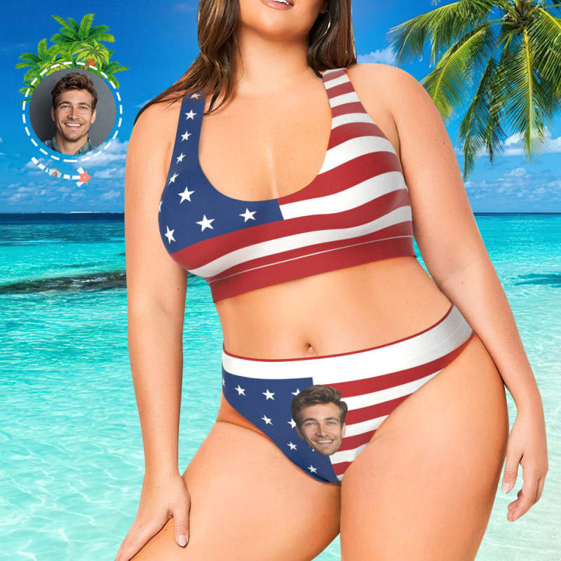 Best Plus Size Swimwear Face Swimsuit Custom Bikini with Face - American Flag