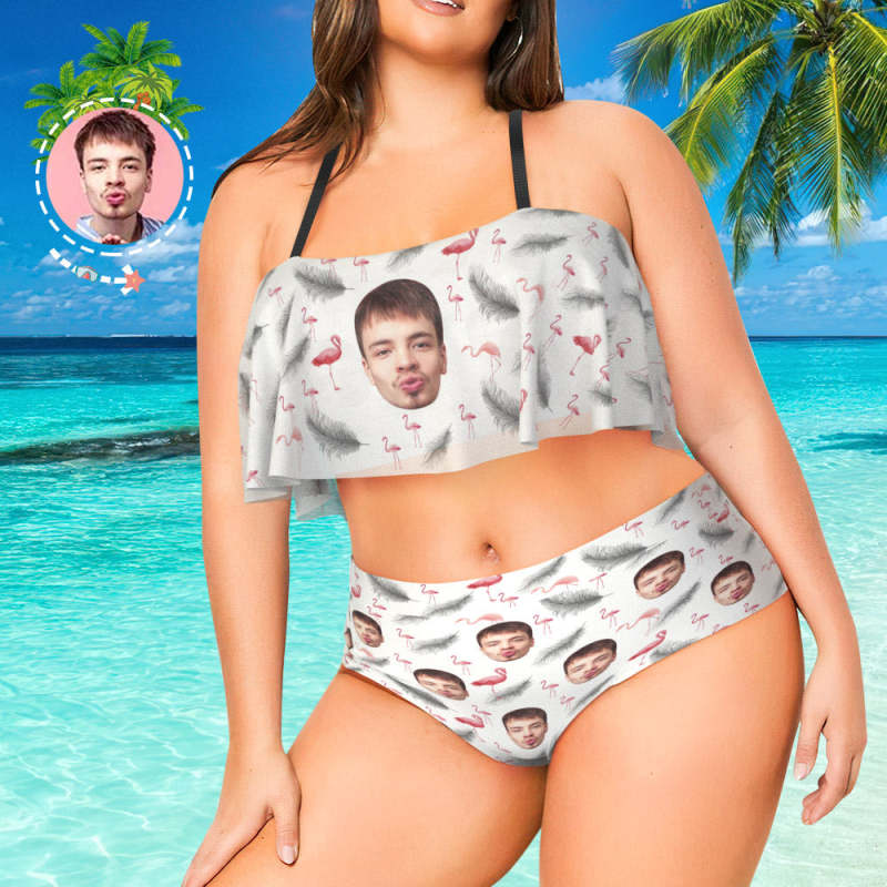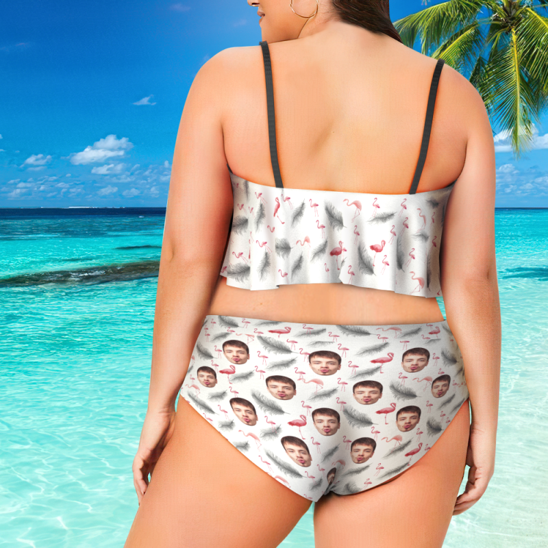 Best Plus Size Swimwear Face Swimsuit Custom Ruffle Bikini with Face High Waisted - Feather
