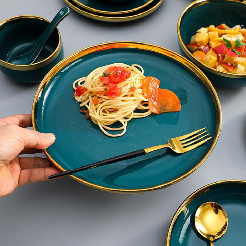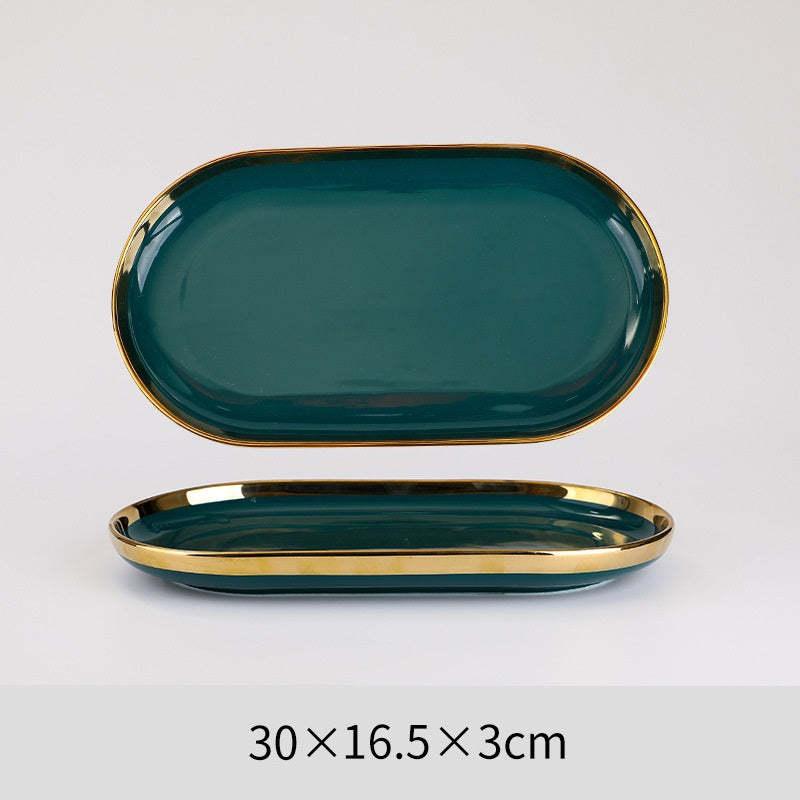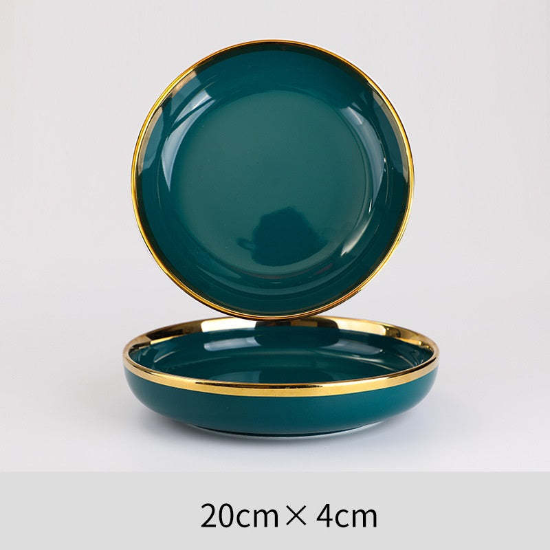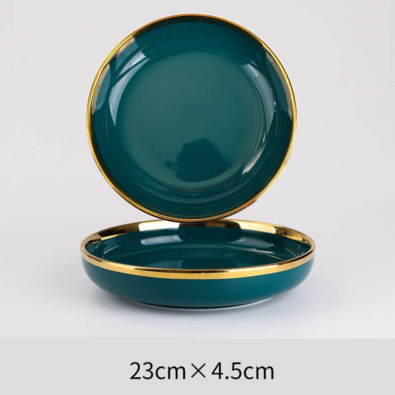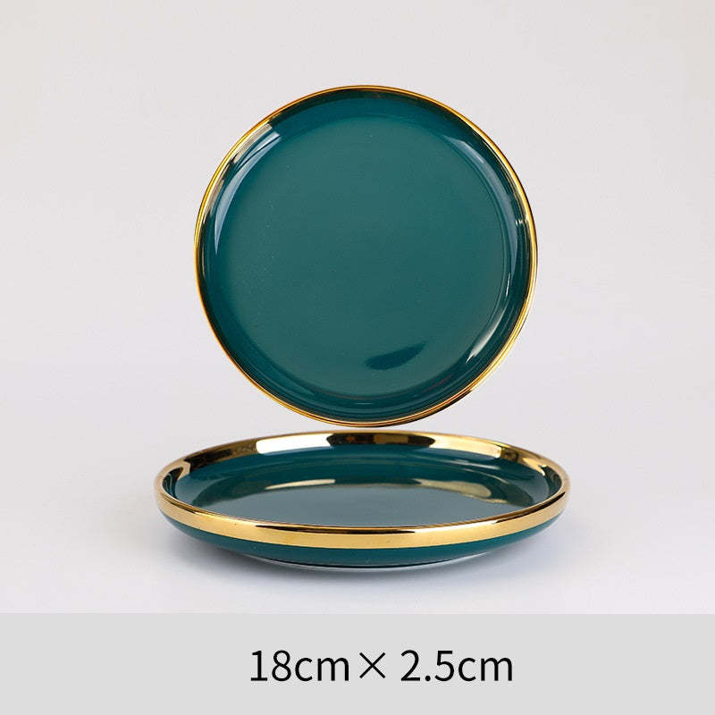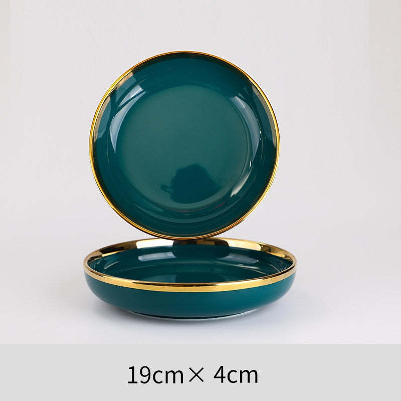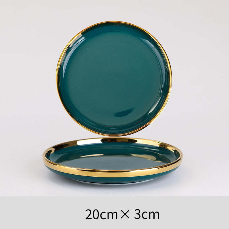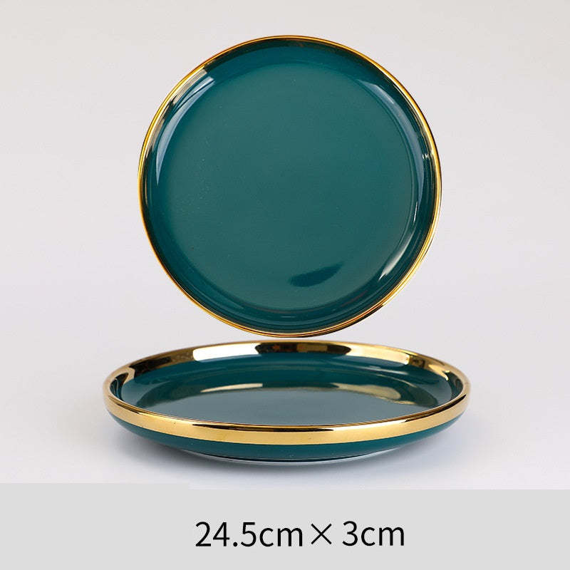 Ceramic Peacock Green Dinner Plate and Gold Edge Dinner Plate Decorate Family Gifts