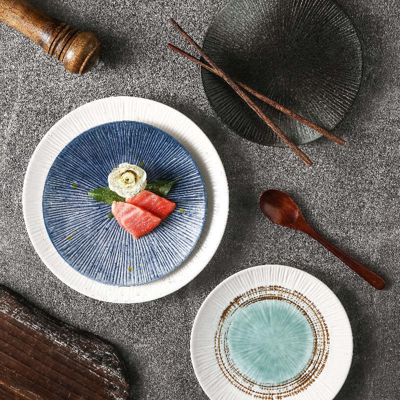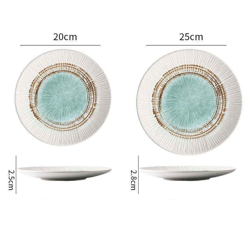 Ceramic Plate Striped Western Food Plate Decorated Family Gifts