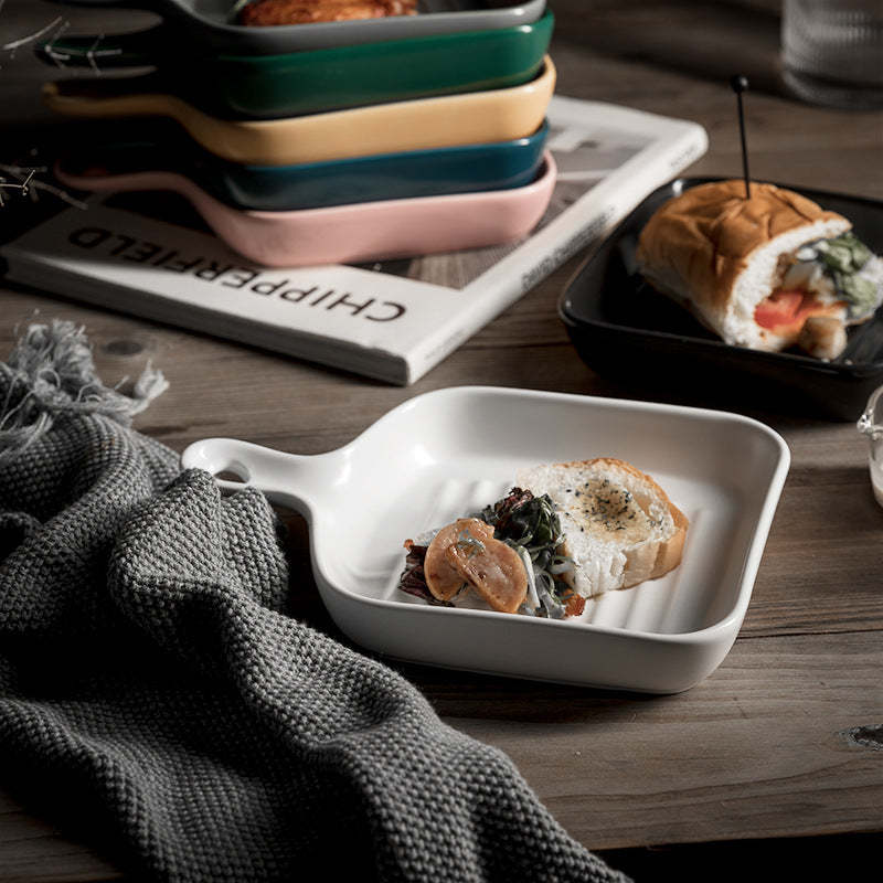 Ceramic Western Food Plate with Handle Decorate Family Gifts