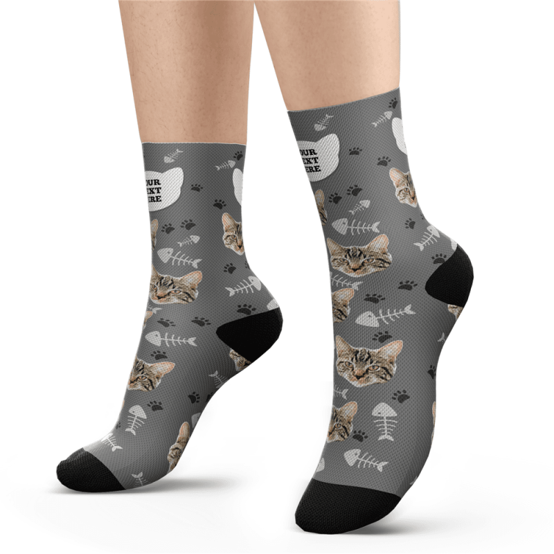 Custom Cat Socks With Your Text - Funny Face Socks Personalised Pet Face Socks