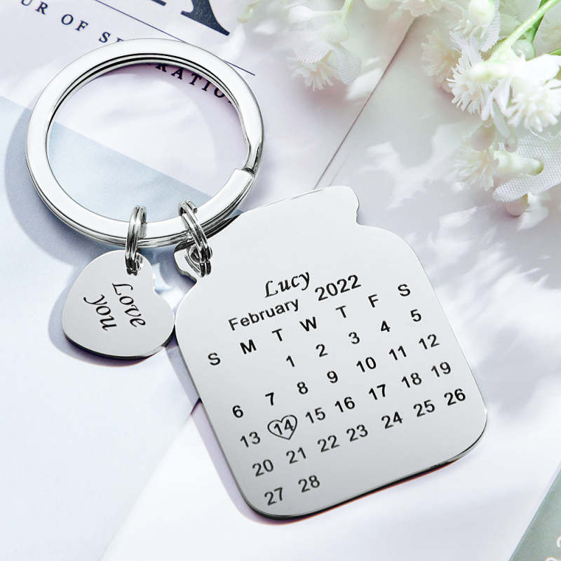 Custom Engraved Bottle Calendar Keychain Save The Date Keychain Birthday Gift