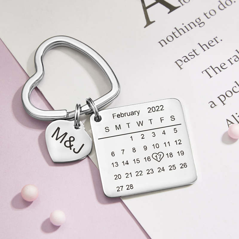 Custom Engraved Calendar Keychain Heart Key Ring Save the Date Keychain Creative Gift