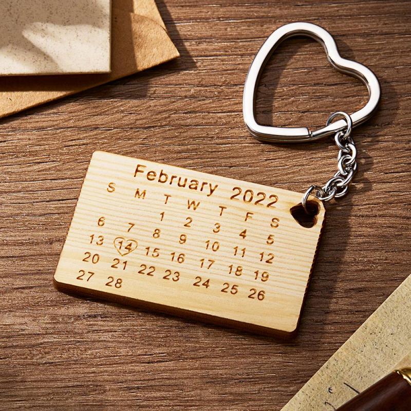 Custom Engraved Calendar Keychain Save the Date Keychain Valentine's Day Gift for Lover