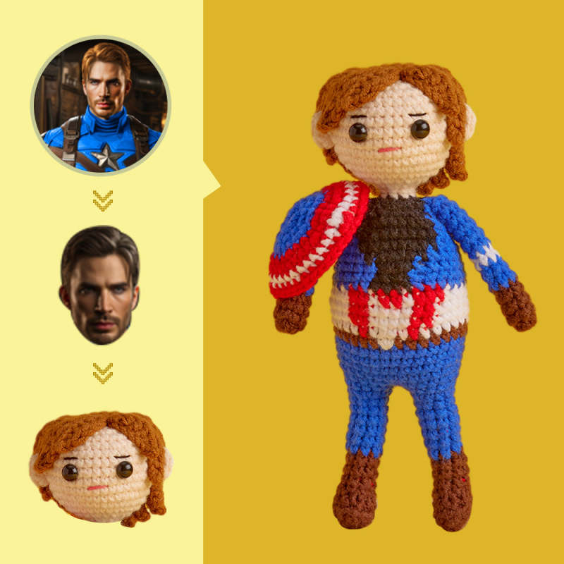 Custom Face Crochet Doll Personalized Gifts Handwoven Mini Dolls - Captain America