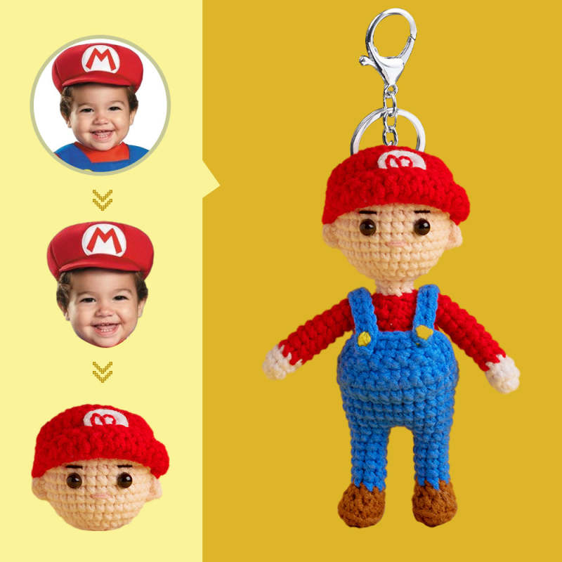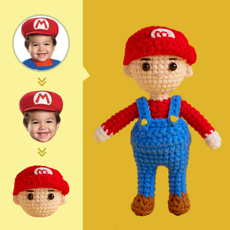Custom Face Crochet Doll Personalized Gifts Handwoven Mini Dolls - Mario
