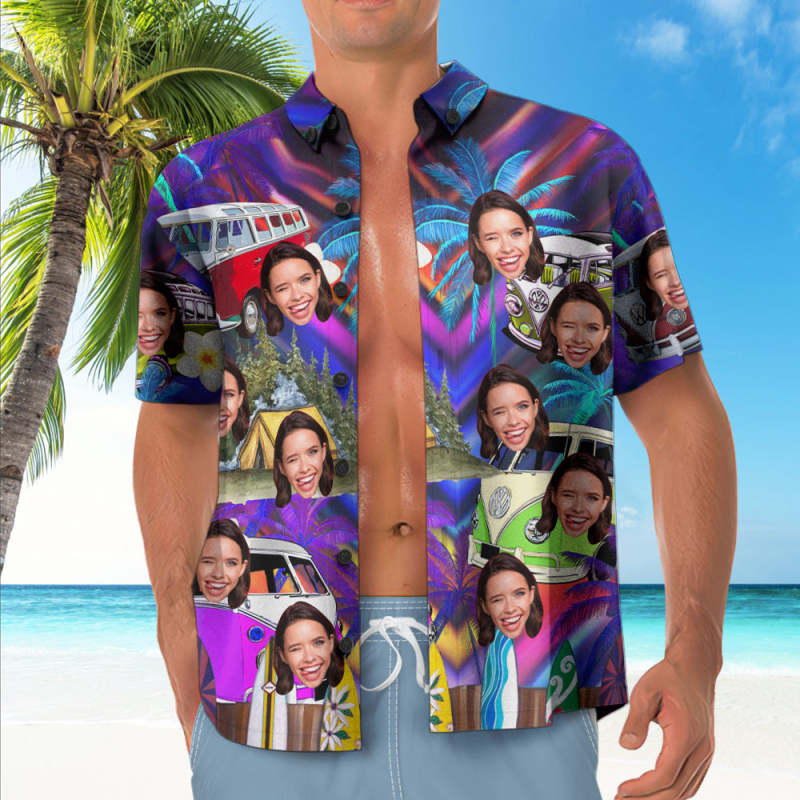 Custom Face Hawaiian Shirt Beach Bus Pattern Hawaiian Shirt