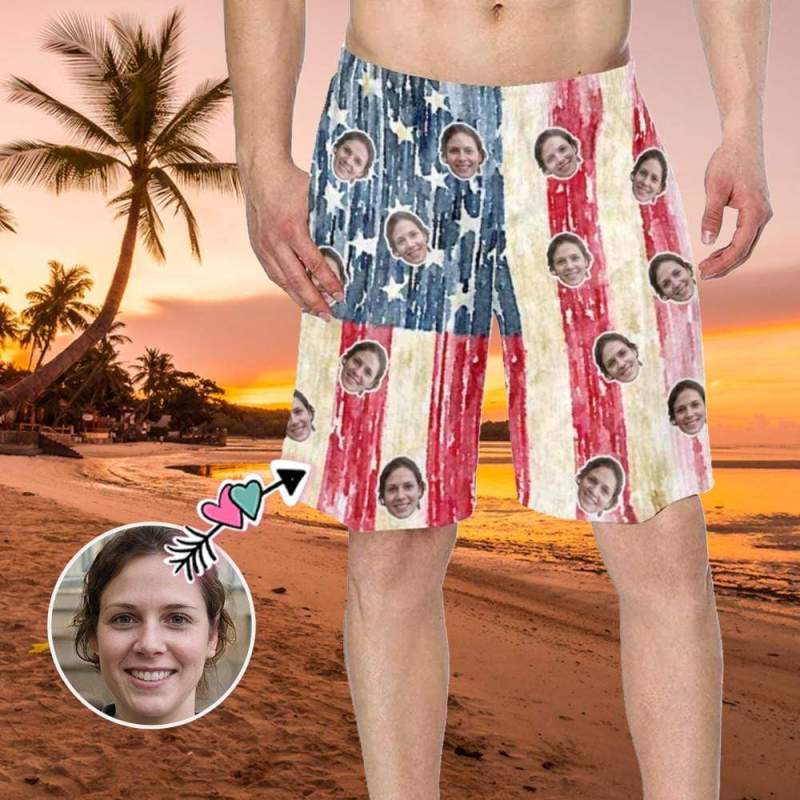 Custom Face Swim Trunks Mens Swim Trunks with Pictures - Artistic American Flag
