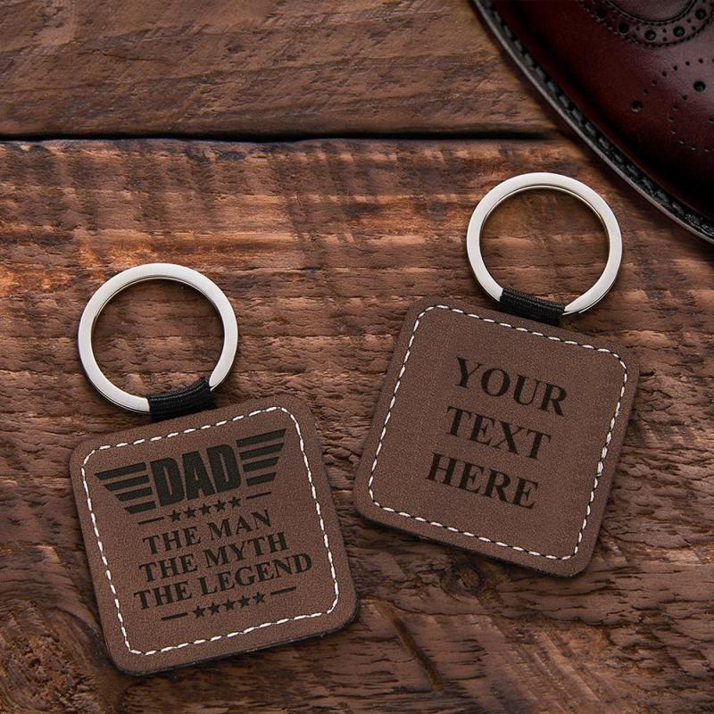 Father's Day Gift Custom Leather Keychain With Engraved Festival Gifts