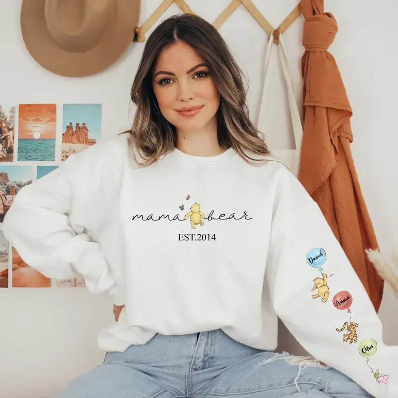 Custom Mama Bee Sweatshirt, Mama Est with Kid Name on Sleeve Sweatshirt