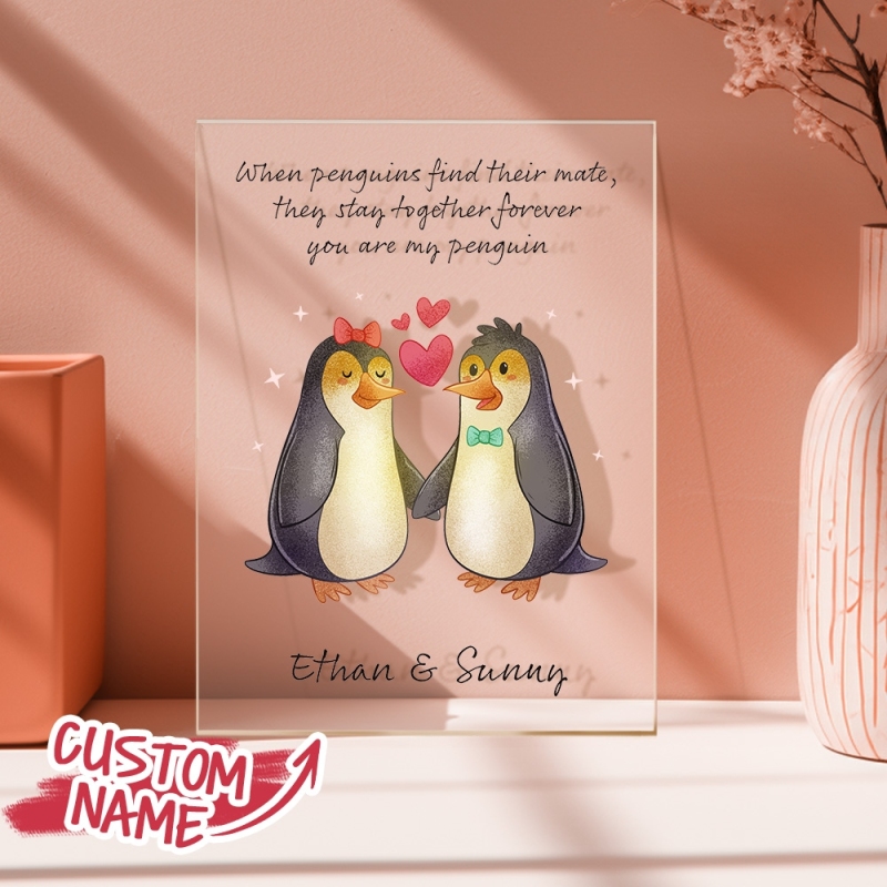 Custom Name Penguins Plaque Personalised Valentines Gifts for Lover Valentines Gift for Girlfriend