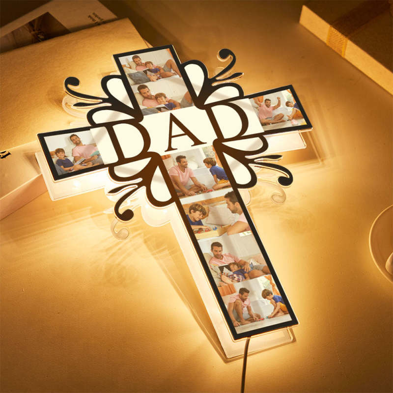 Custom Photo Cross Night Light LED Personalized DAD Theme Lamp Gift For Him