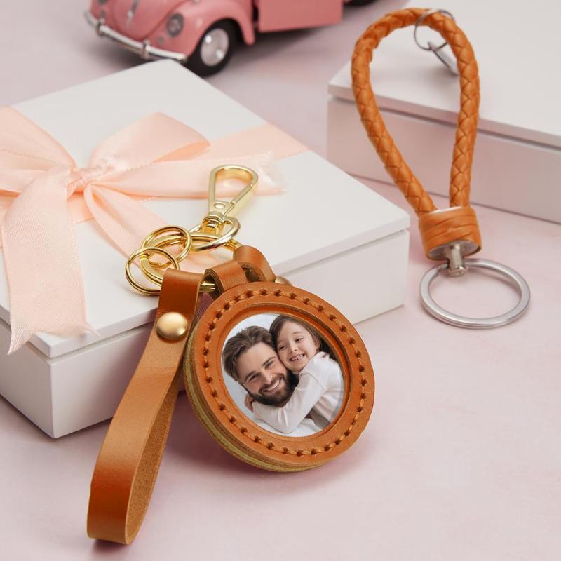Custom Photo keychain Personalized Picture Leather Keyring Birthday Gift