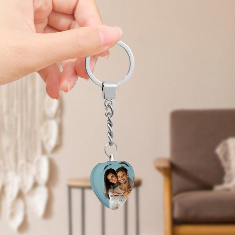 Valentine's Gifts Custom Photo Keychain Personalized Crystal Heart Keyring Photo Heart Shape Keychain