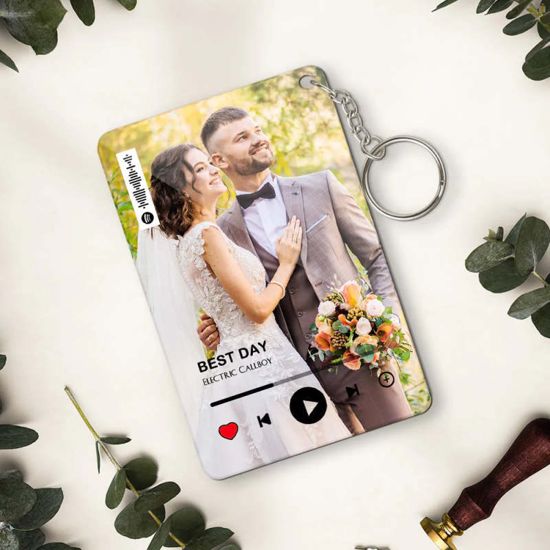 Custom Photo Spotify Plaque Music Keychian Personalized Album Cover Couples Gift