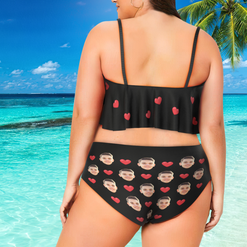 Custom Plus Size Swimwear Face Swimsuit Custom Ruffle Bikini with Face High Waisted - Heart