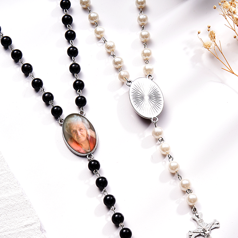 Custom Rosary Beads Cross Multi-Color Necklace Personalized Necklace with Photo Memorial Gift for Women