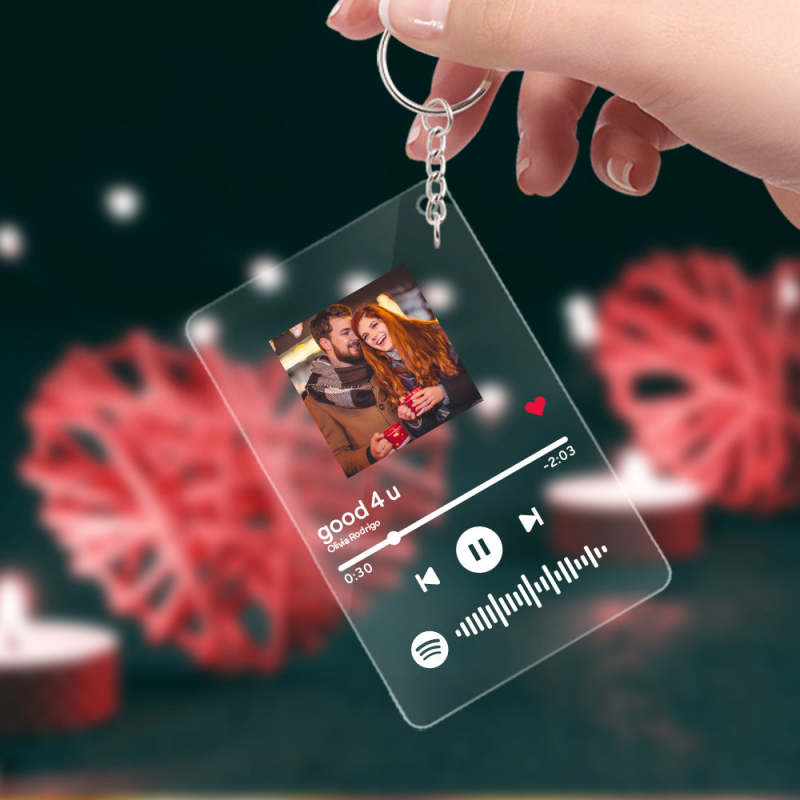 Custom Spotify Code Glass Music Keychain Photo Keyring Gift For Girlfriend