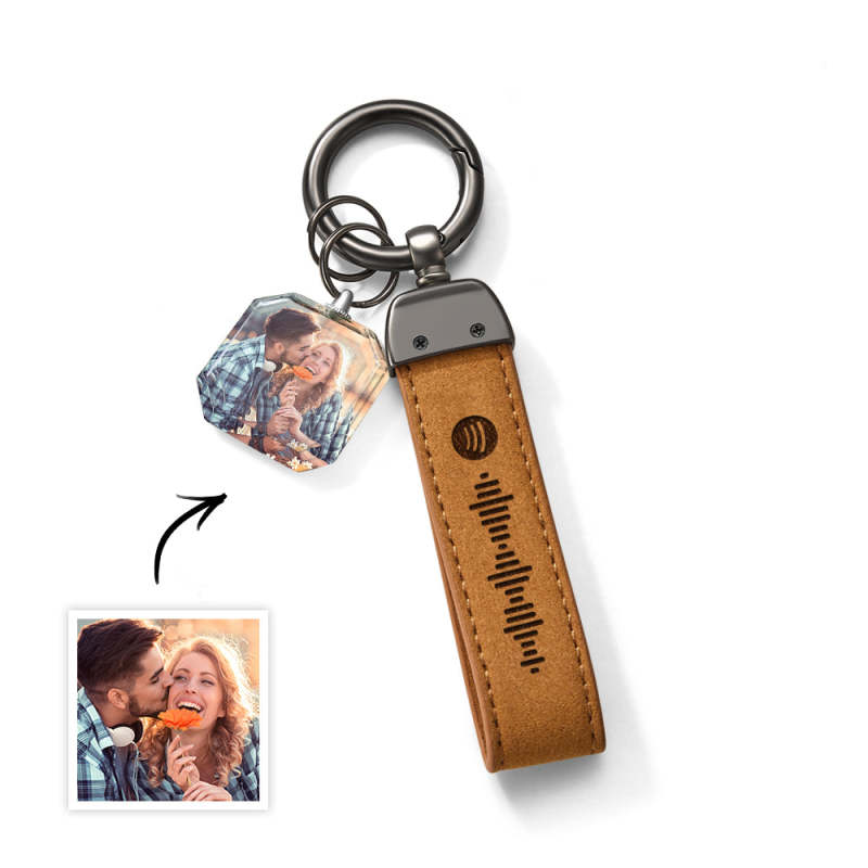 Custom Spotify Keychain Leather Keychains Personalized Photo Keychains For Lover