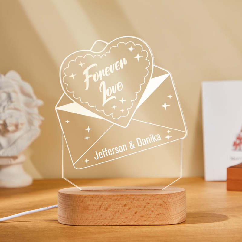 Custom Text Acrylic Envelope Night Light Personalized Coloful Lamp Valentines Day Gift