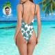One Piece Swimsuit Face Swimsuit Custom Bathing Suit V-Neck with Face - Green Leaves