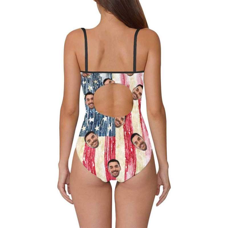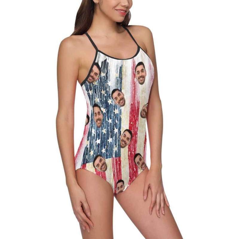 Face Swimsuit One Piece Swimsuit Custom Bathing Suit with Face - Artistic American Flag