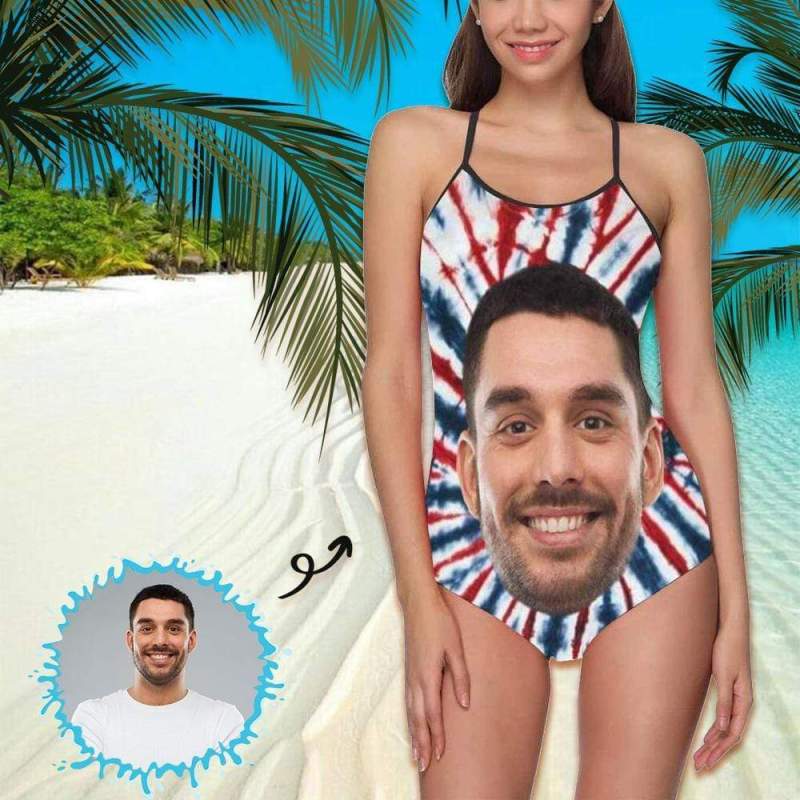 One Piece Swimsuit Face Swimsuit Custom Bathing Suit with Face - Dyed American Flag