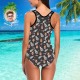 One Piece Swimsuit Face Swimsuit Custom Bathing Suit with Face - Feather & Flamingo