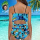 Face Swimsuit Custom Ruffle Bikini with Face High Waisted - Coconut Tree