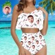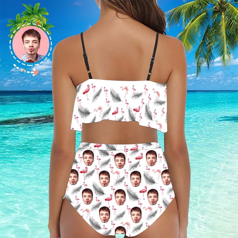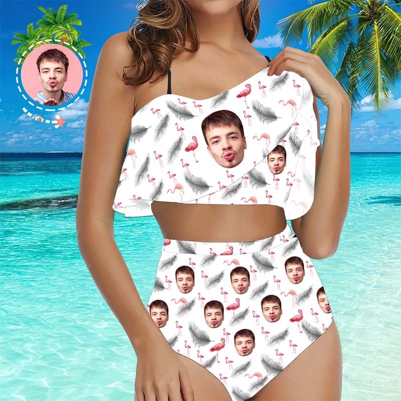 Face Swimsuit Custom Ruffle Bikini with Face High Waisted - Feather