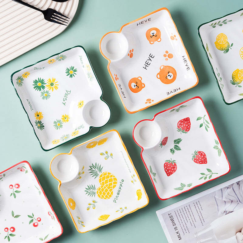 French Fries Plates Ceramic Cute Square Design Household Tableware Plates