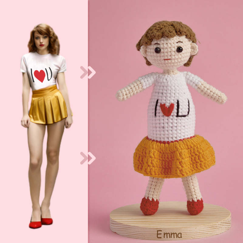 Full Body Customizable 1 Person Custom Crochet Doll Personalized Gifts Handwoven Mini Dolls - I Love U Girl