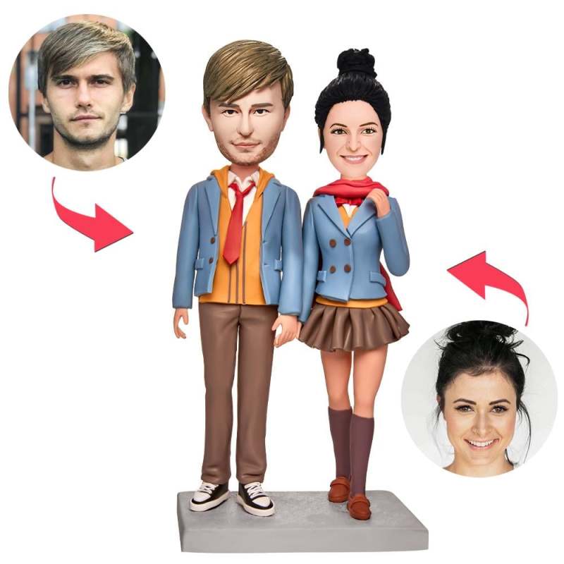 Lovers in Matching Outfits Custom Bobblehead With Engraved Text