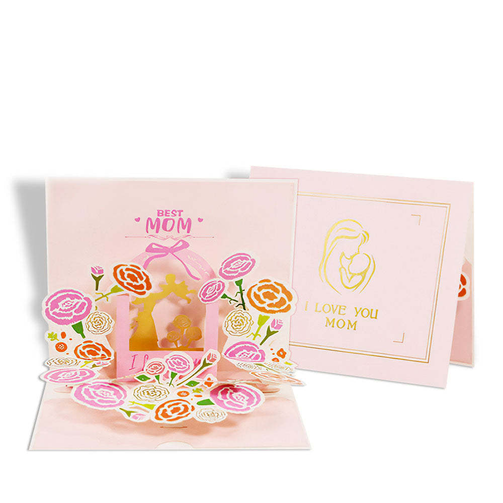 Mother's Day Card Pink Flower 3D Pop Up Greeting Card for Her
