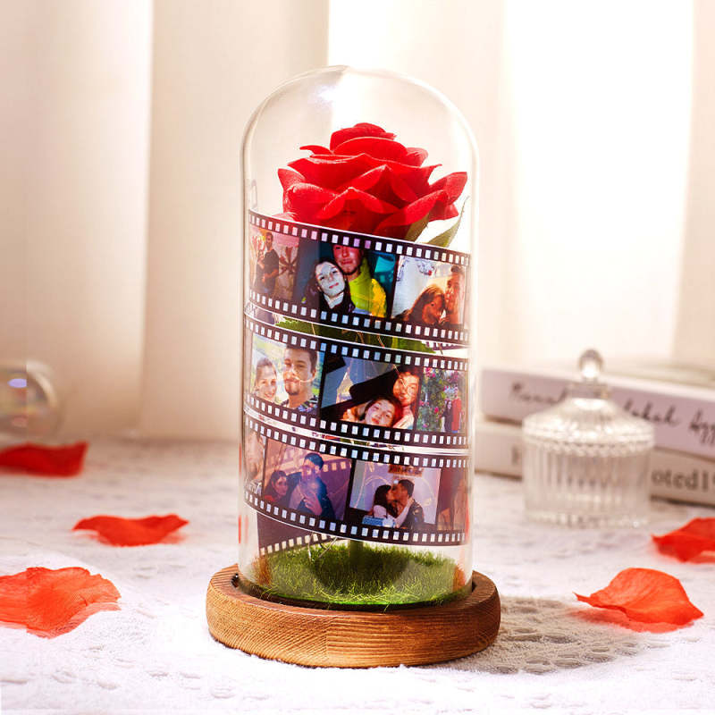 Mother's Day Gifts Custom Rose Flower in Glass Led Lamp Photo Album with Film Black Base
