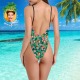 One Piece Swimsuit My Face Swimsuit Custom Bathing Suit V-Neck with Face - Leaves & Flowers