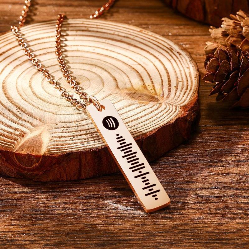 Personalized Bar Necklace Music Code Necklace Christmas Gifts Custom Music music Scan Code Stainless Steel Necklace
