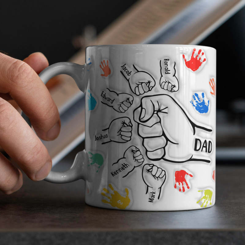 Personalized Custom Names 3D Inflated Effect Printed Mug Gift for Dad Grandpa