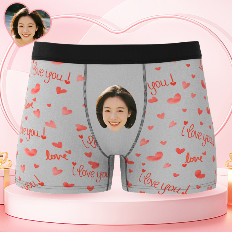 Personalized Face Underwear Custom Photo Underwear I Love You Boxers for Him
