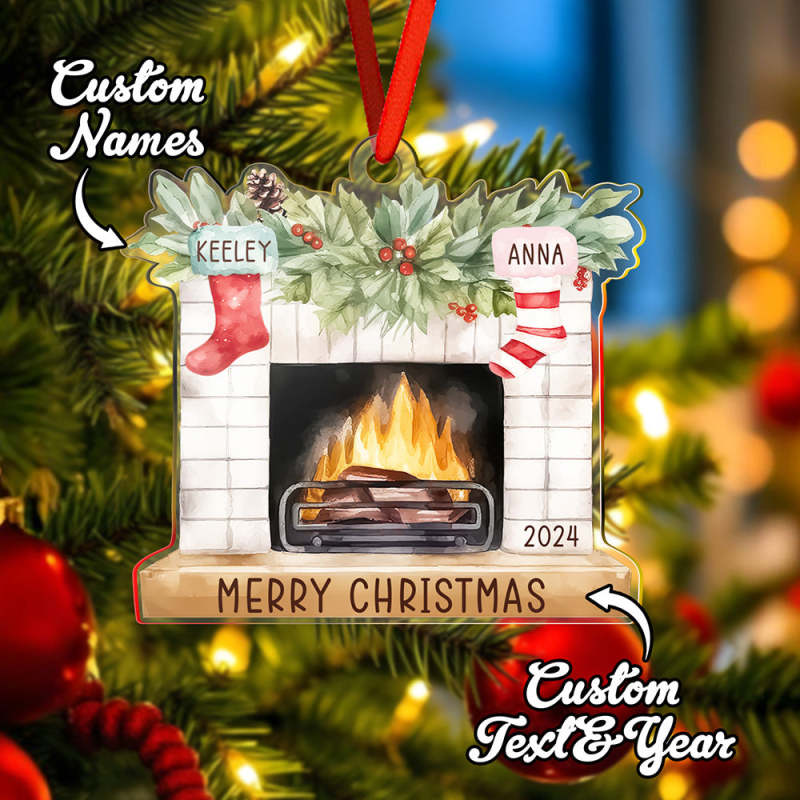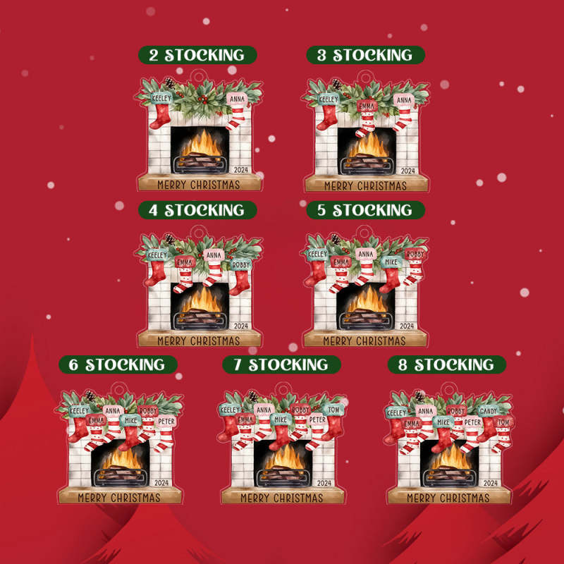 Personalized Family Christmas Ornament with Name Fireplace Stocking Ornament Gift for Family