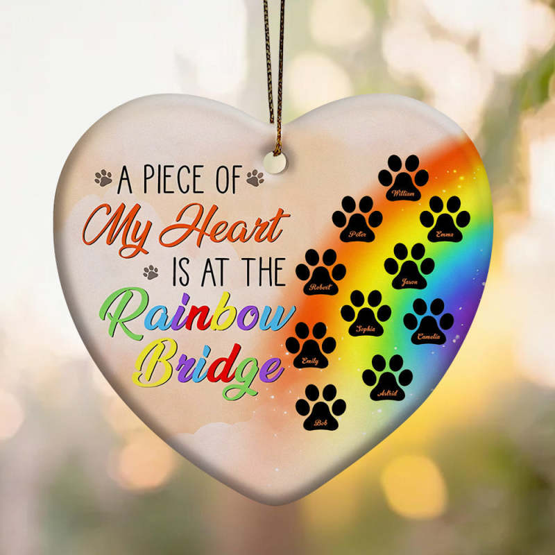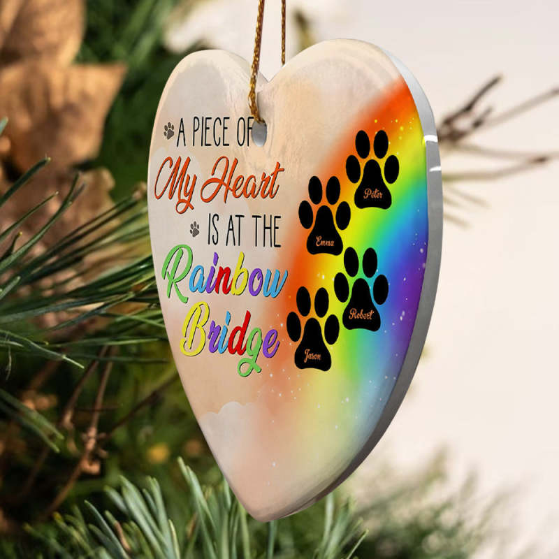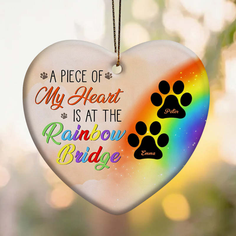 Personalized Heart Pet Ornament A Piece Of My Heart Is At The Rainbow Bridge Ornament for Pet Memorial Gift