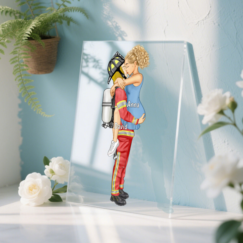Personalized Keychain Couple Portrait Firefighter Gifts Occupation Keychain
